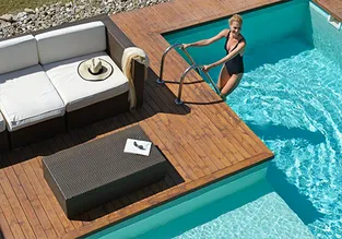 Профессиональное строительство террас вокруг бассейнов от проекта до сдачи в эксплуатацию. Отделка бассейна террасной доской из ДПК - это прекрасный способ облагородить пространство и сформировать теплый, нескользкий, удобный в эксплуатации пол.