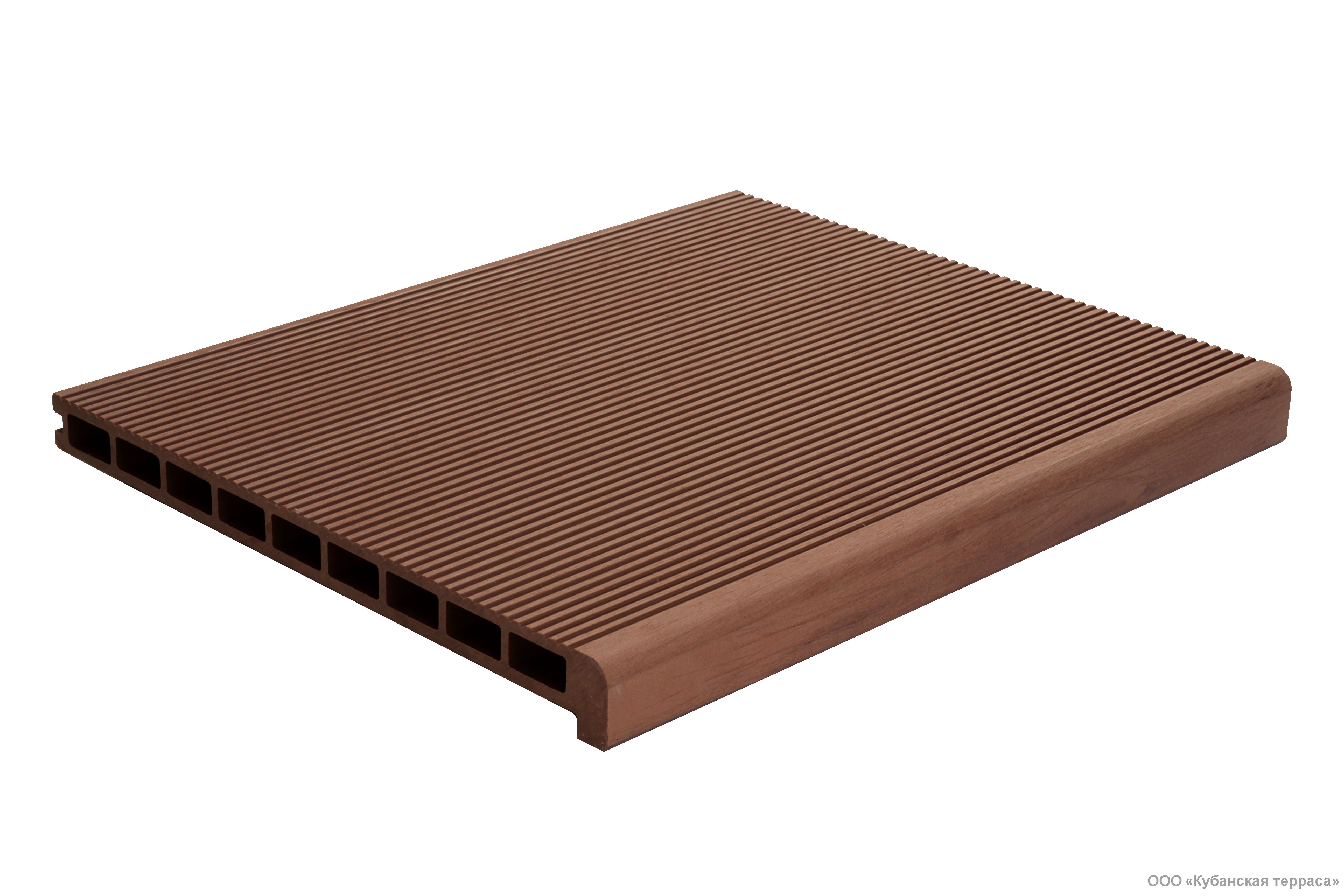 Ступени из ДПК NEXTWOOD применяются в строительстве как для внутренних так и для наружных работ. Материал изготовлен из высококачественного древесно-полимерного композита, идеально сочетается по цвету с террасной доской и ограждениями NEXTWOOD. Ступени NEXTWOOD отлично выдерживаю большие нагрузки, профиль ступени пустотелый, имеет рёбра жесткости. Поверхность ступени ребристая, специально изготовлена для противоскольжения. Закругленный носик ступени придает ей завершенную форму и изящность, а также служит для удобства при хождении.