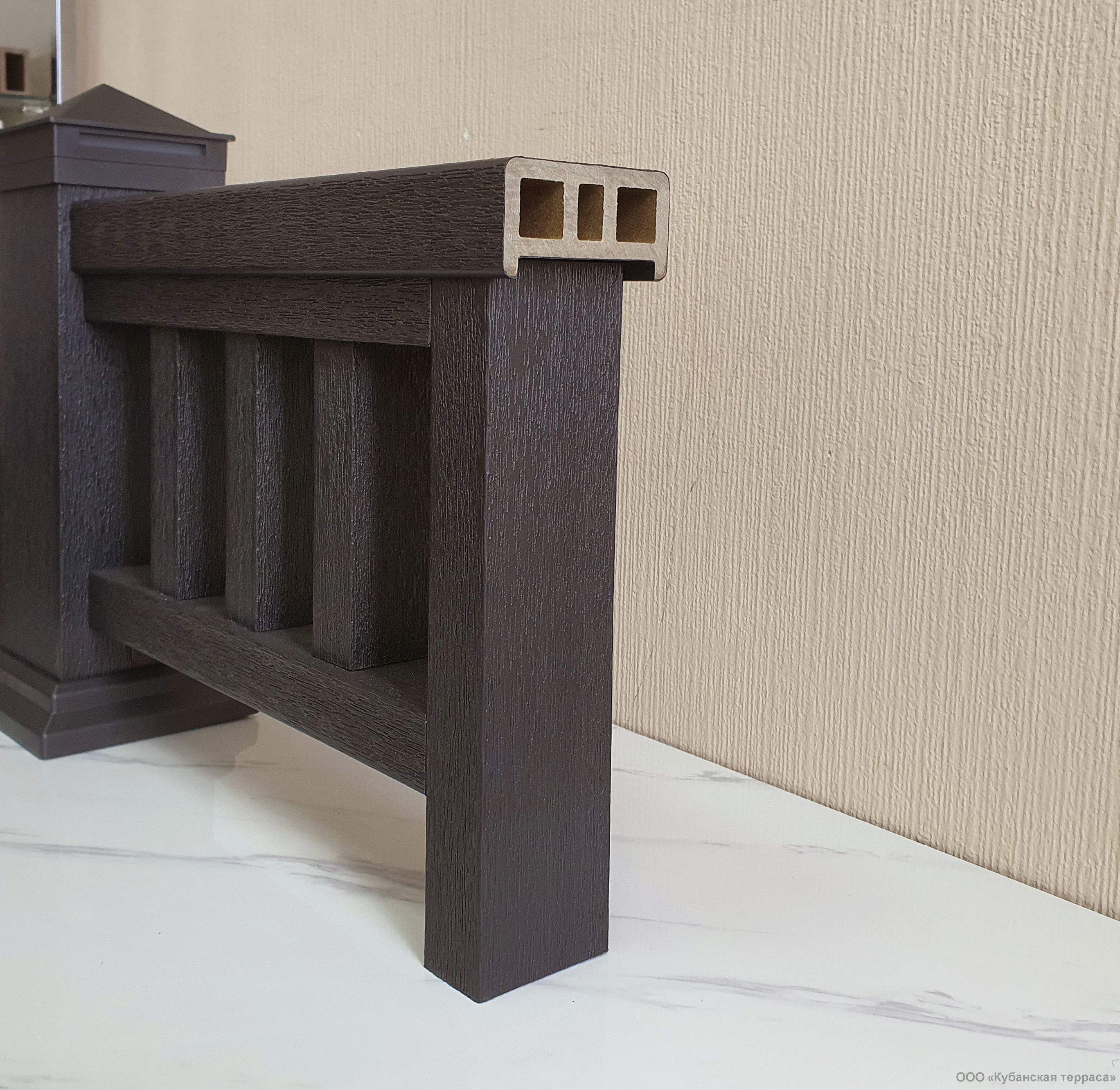 Ограждение серии «Террапол Практик» — современное решение для обустройства террас, балконов, садовых участков и других зон. Изготовлено из древесно‑полимерного композита (ДПК), который гармонично сочетает преимущества натурального дерева и современных полимеров.