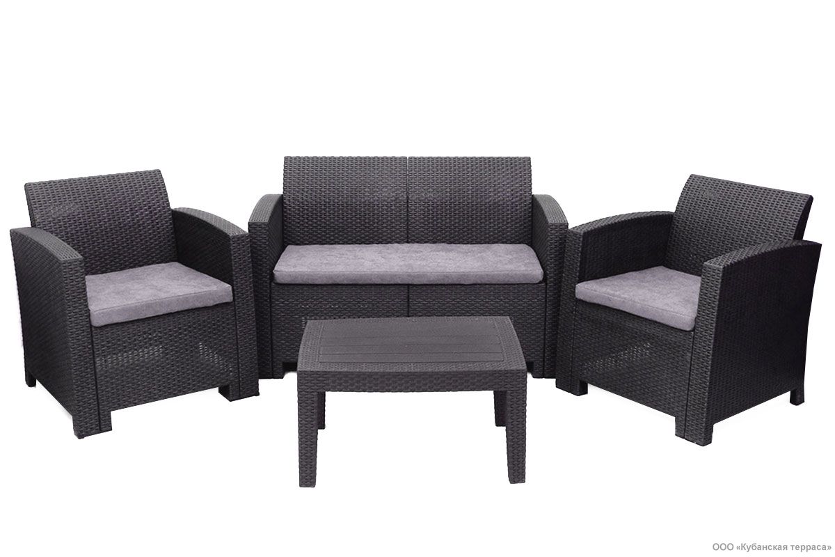 Материал полипропилен, полиэстер + паралон Производитель B:Rattan Цвет Мебель Графит Серия ARIZONA Внешние габариты (ДхШхВ), см диван 1205 х 660 х 760 мм, кресло: 680 х 660 х 760 мм, столик: 705 х 505 х 385 мм Упаковка (количество коробок), шт 4 Упаковка (размер), см 54 х 75 х 11 см, 60 х 76 х 72 см (3шт) Вес брутто, кг 32.3 -